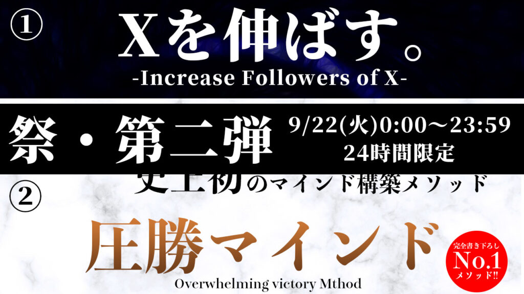 に加えなんと!!!長年公開停止となっていた秘伝のマインド書『圧勝マインド』再販決定!!